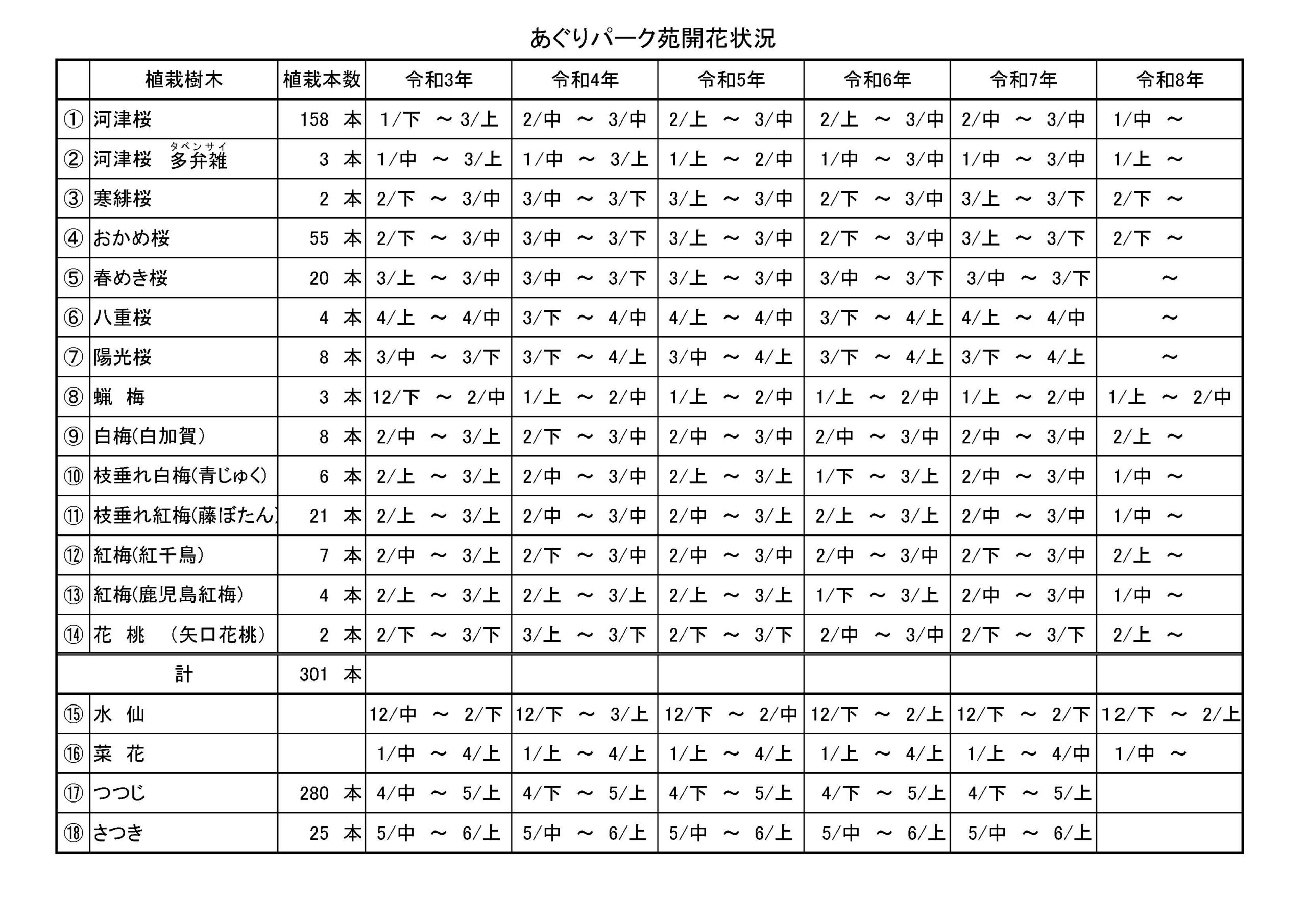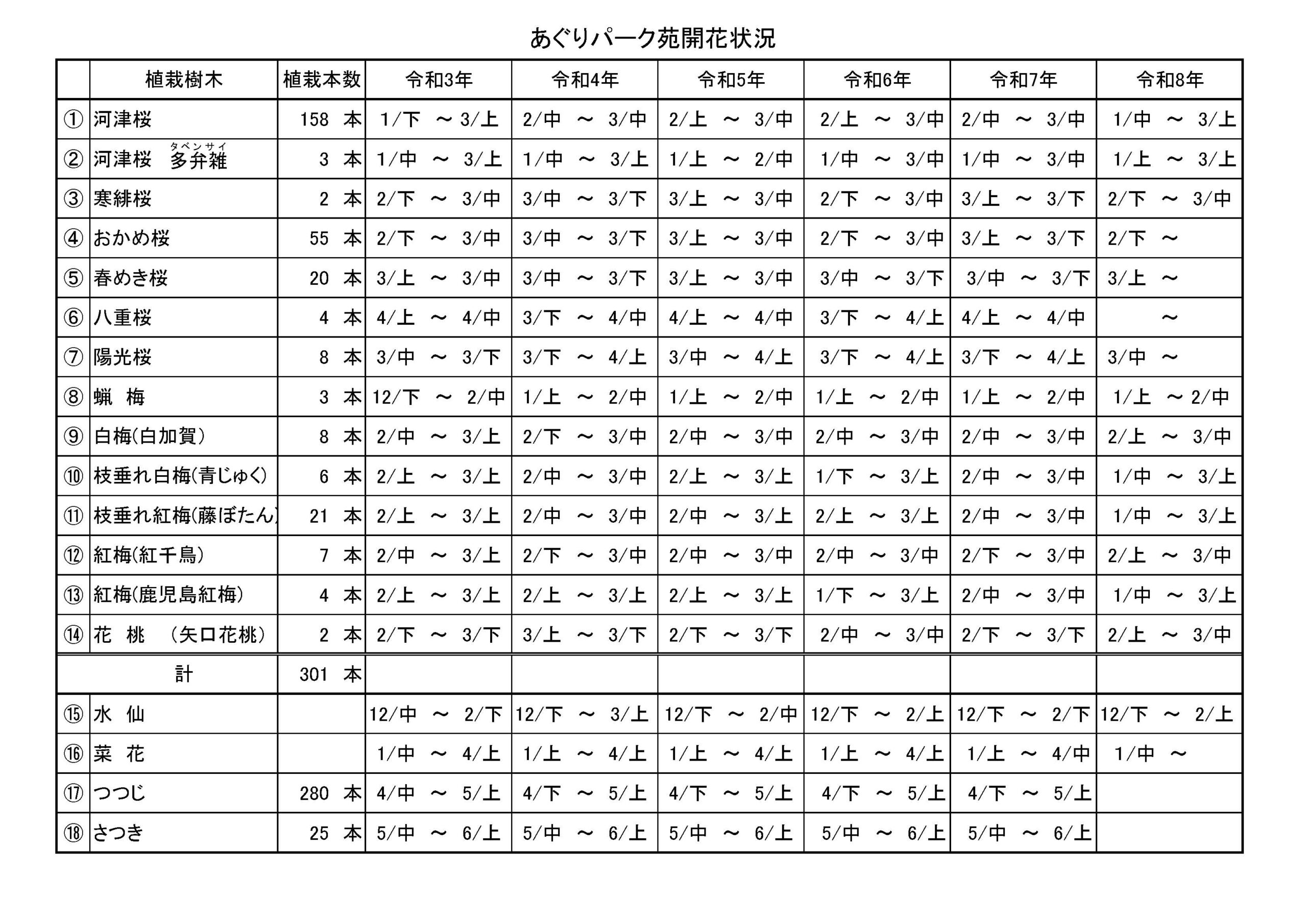 こちらのデータは例年の開花時期です。開花は気象条件により前後いたします。