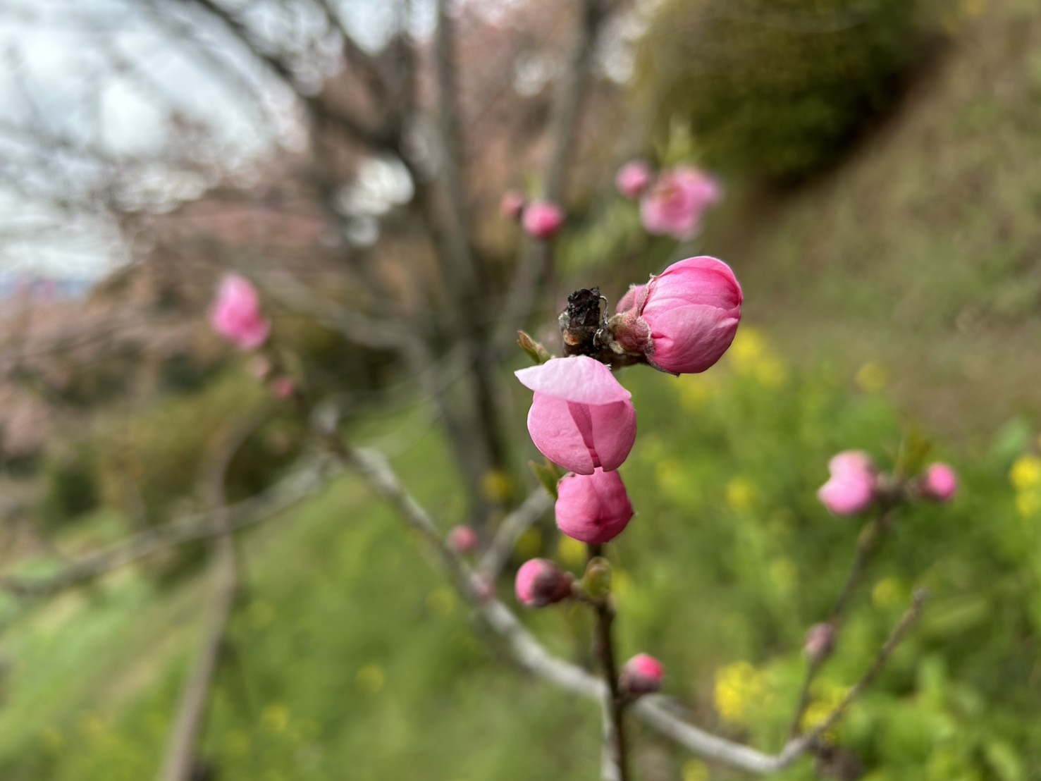 一方で、寒緋桜やおかめ桜は、可愛らしい蕾の状態。これから順に花開く準備をしています。